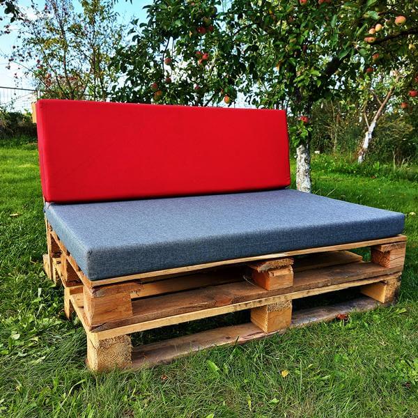 Poduszki ogrodowe na palety 120x80 + 120x40 – szaro-czerwony zestaw z charakterem